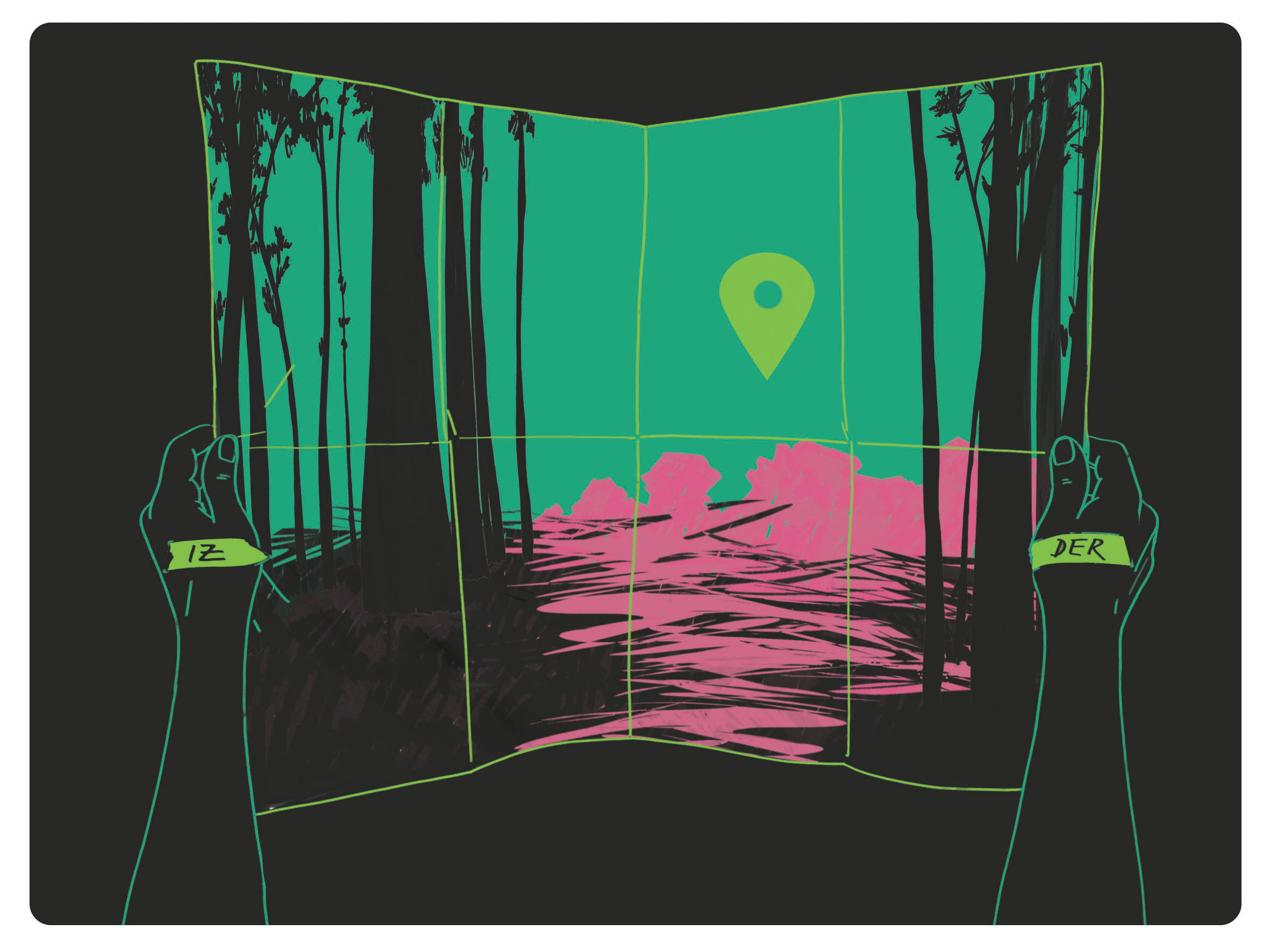 Cada vez que dibuja el mapa de un bosque, la ingeniera geógrafa Wendy Pineda se pega un trozo de cinta adhesiva sobre el dorso de cada mano y escribe «Izquierda» en uno y «Derecha» en el otro. Pineda tuvo problemas para diferenciar ambos lados de su cuerpo desde que era niña y por eso no recuerda cuántos mapas ha arruinado por dibujar mal el flujo de un río. Cuando supo que era zurda, su madre la obligó a escribir con la derecha: no quería que su hija mayor fuera señalada como la rara del salón, como entonces —en el Perú de inicios de los ochenta— eran vistos los niños como ella. La ingeniera dice que por eso nunca aprendió a coger bien un bolígrafo, ni a bailar con destreza ni a conducir un auto. A pesar de sus problemas de lateralidad, dibujar es lo único que le ayuda a controlar su mente dispersa. Mientras conversa con alguien, suele trazar letras o figuras geométricas en su cuaderno. Sus líneas son obtusas y duras cuando está enojada o indignada, y suaves y curvas cuando está de buen humor. «Dibujo para concentrarme», dice la activista de treinta y cuatro años, aunque a veces siente que debería dejar de hacerlo. Una vez un ministro de Estado se enojó al verla esbozando cuadraditos mientras él le hablaba. En otra ocasión una anciana indígena a la que entrevistaba le increpó por lo mismo. A Pineda le cuesta explicar que cuando dibuja le presta más atención al mundo. Hace algunos años, en un intento desesperado por no perjudicar su labor, fue al psicólogo para «intentar curarse». Hacer mapas y tener problemas de lateralidad es terrible porque supone una lucha física pero también un conflicto interior. Desde que empezó su carrera como activista, el límite que separa su vida personal de su trabajo por la defensa de la Amazonía, le ha sido tan difícil de trazar como distinguir su izquierda de su derecha.